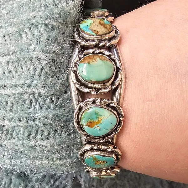 (608) 785-0110Estate Sterling Synthetic Turquoise Cuff Bracelet