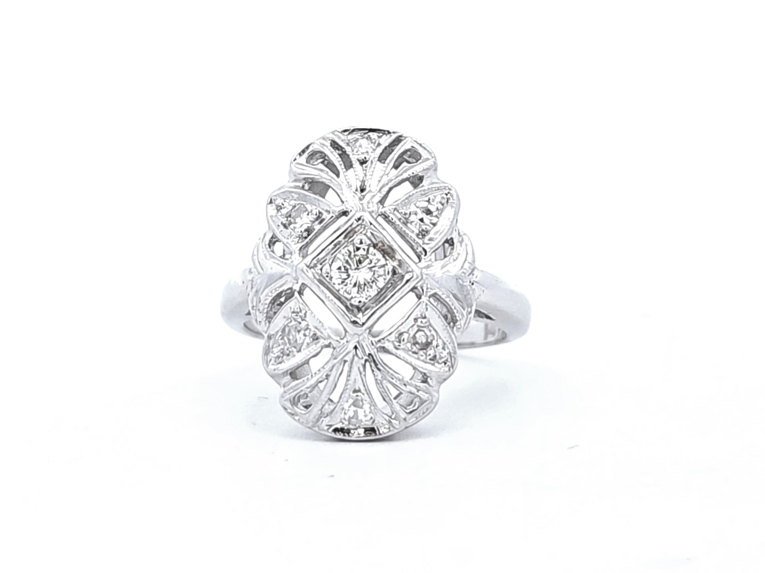 4. Estate White Gold Filigree Diamond Ring