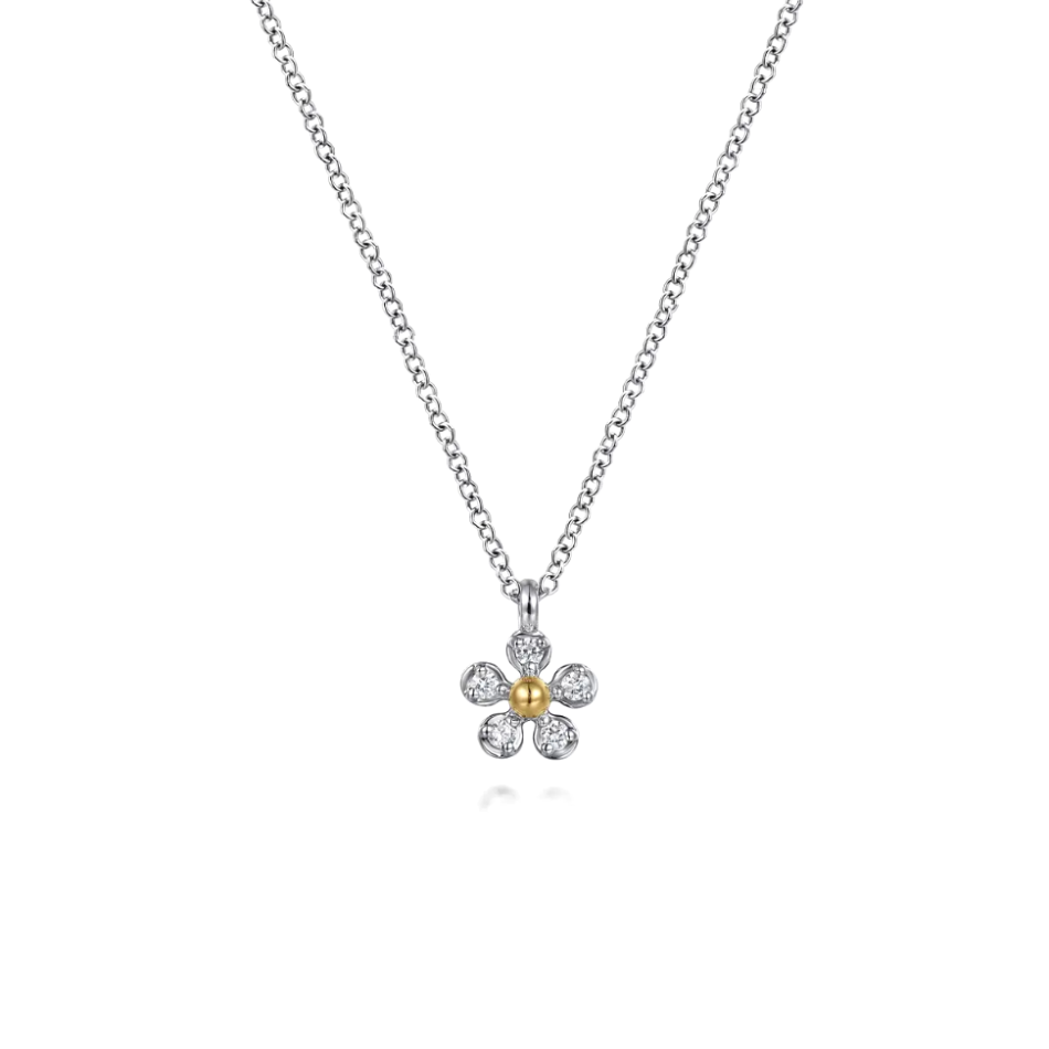 4. Gold-Plated Sterling Diamond Flower Pendant